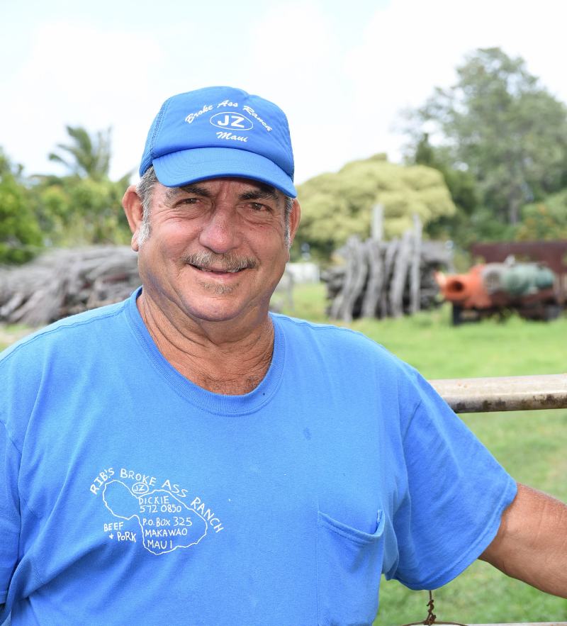 “Dickie” Boteilho was born and raised in Olinda, Maui, and grew up around agriculture with his family. For many years, he helped his uncle Anthony Silva with his cattle operation, as well as other family members with their ranching enterprises. While still in high school in 1972, Dickie started his own ranch. His livestock enterprise grew over time in size and diversity, and led to raising beef cattle, meat goats, meat rabbits, chickens and ducks in Maui County.